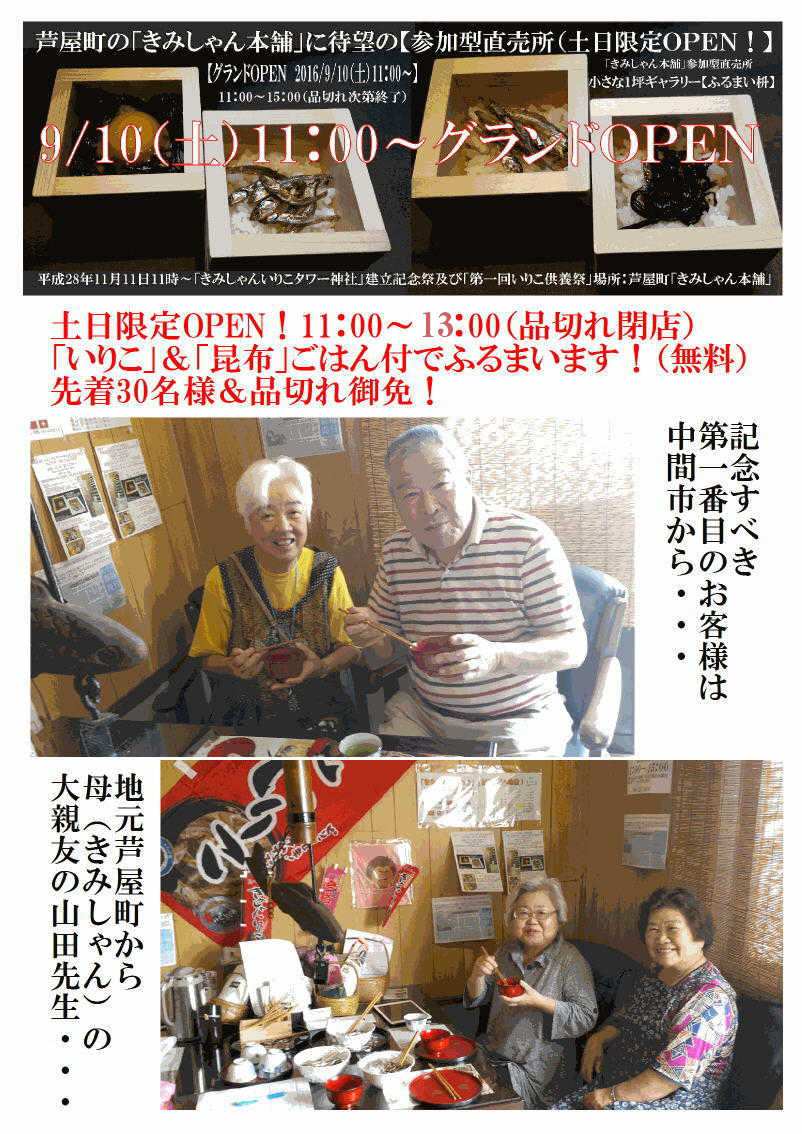 ※生卵持参で「きみしゃんたまごかけ昆布」も試食可能です!ただし臨時休業やごはんの品切れの場合はご了承下さい!