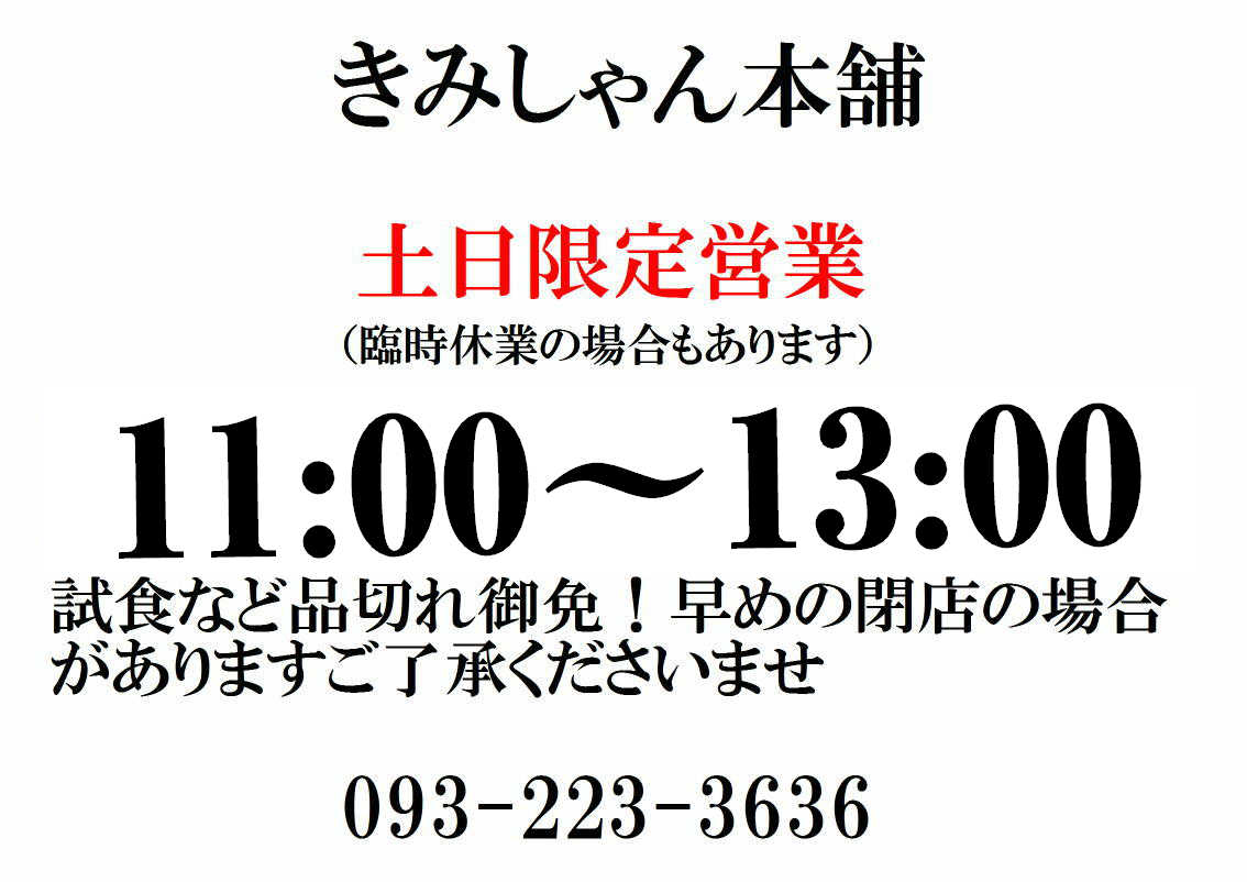 さて日夜製造に「きみしゃん」はがんばっている状況で、しばらくの間土日販売コーナーの試食は、十分な接客(対応)ができない状況ですので、平成29年6月30日までお休みをさせていただきます。